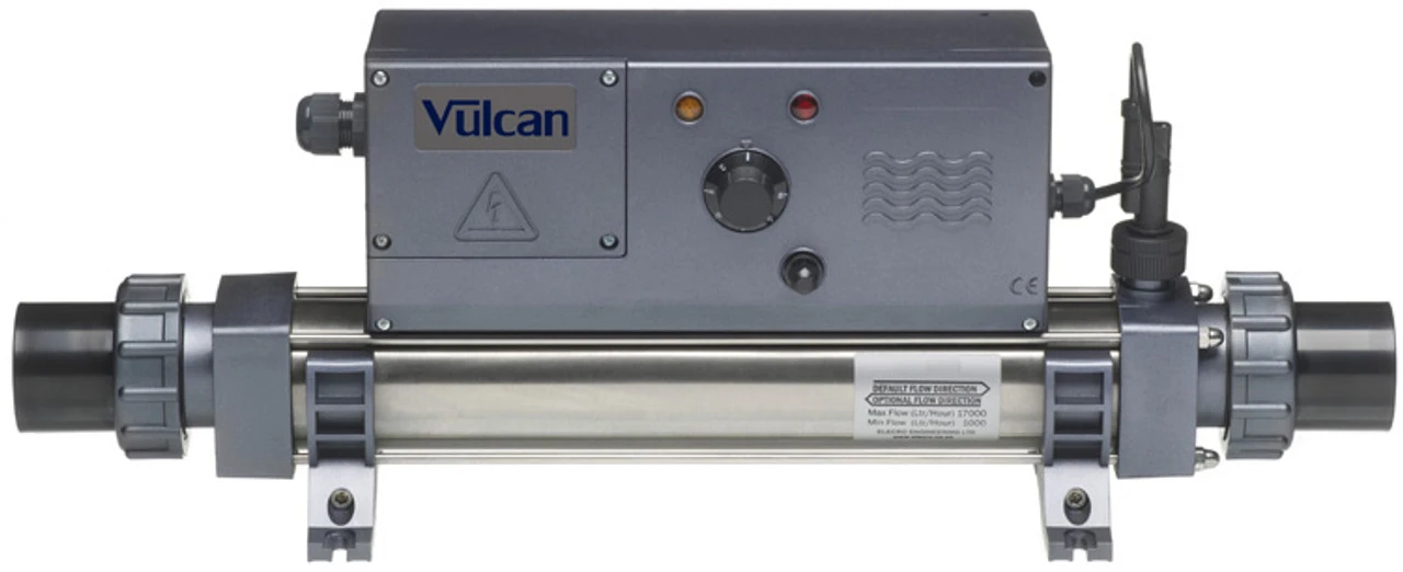 Now with a titanium flow tube and element making the Vulcan heater suitable for use in salt pools, these British made swimming pool heaters are a first class, powerful and dependable solution for heating your swimming pool.